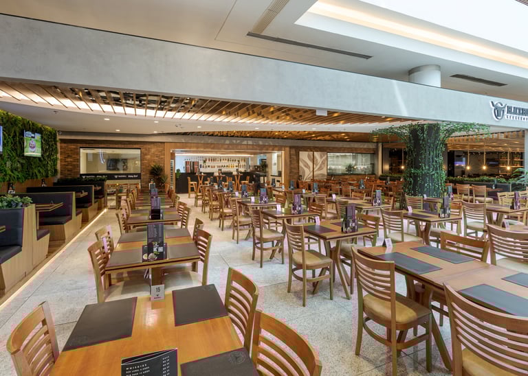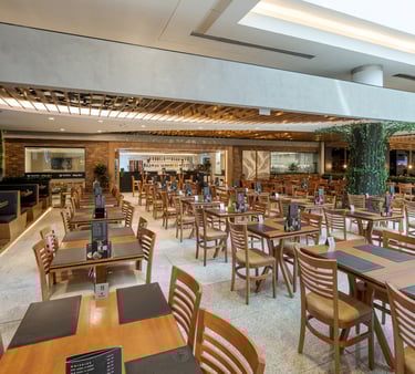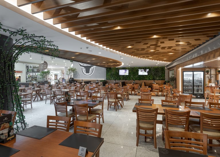 Projeto de interiores para restaurante desenvolvido com linguagem contemporânea e atmosfera acolhedora, valorizando a experiência do usuário desde o acesso até as áreas de permanência. A composição espacial prioriza amplos salões, circulação fluida e setorização clara entre mesas, bar e áreas de apoio, garantindo conforto e eficiência operacional.