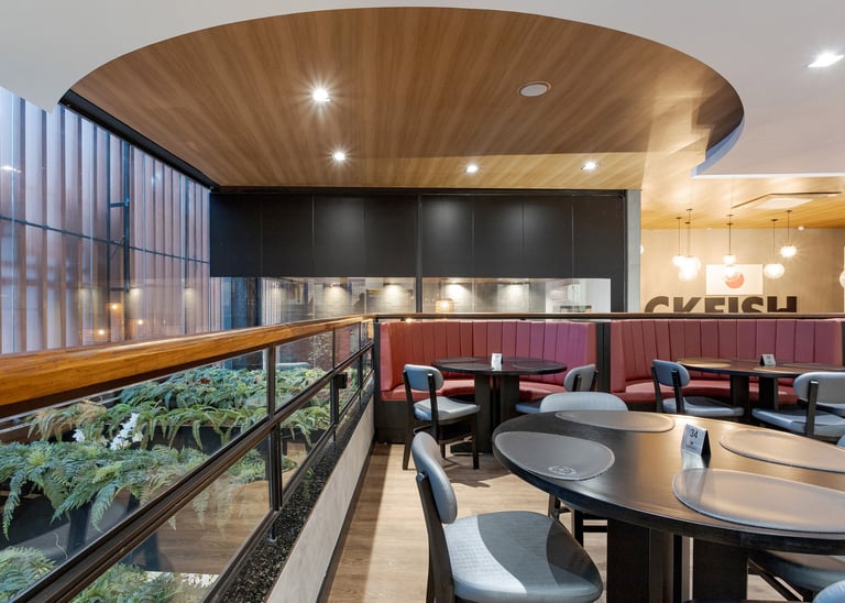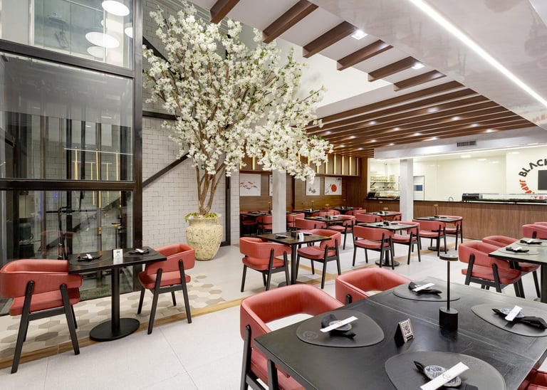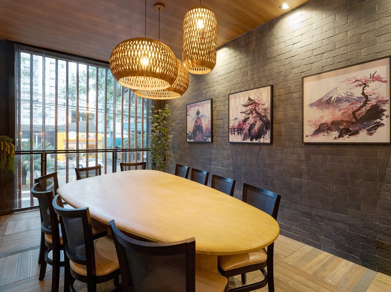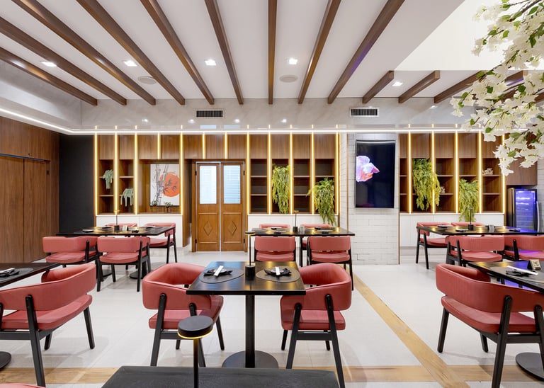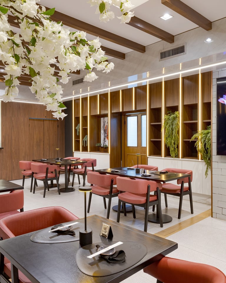 Este projeto comercial foi concebido para traduzir a identidade da gastronomia japonesa de forma contemporânea, sofisticada e altamente sensorial. A arquitetura combina referências orientais com uma linguagem atual, criando uma experiência imersiva que vai além da refeição.