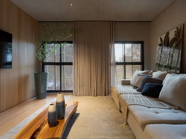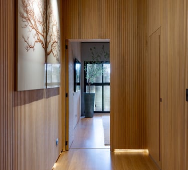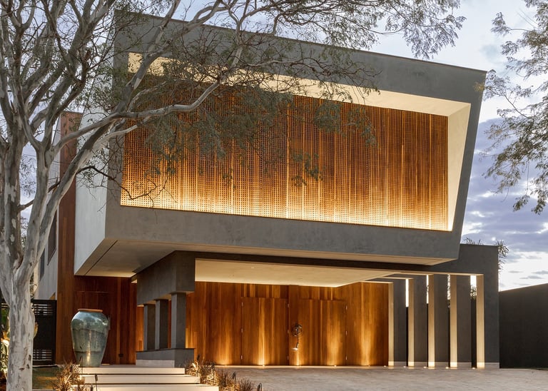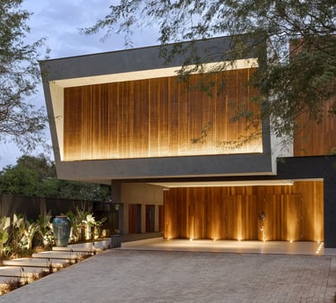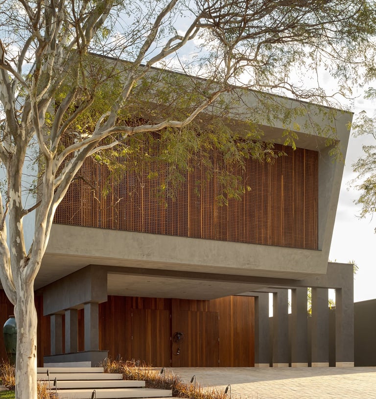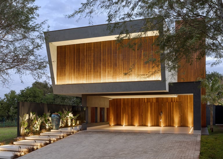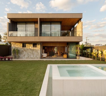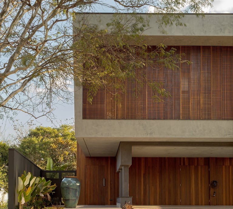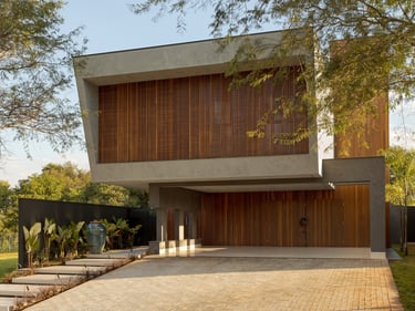 Projeto residencial de linguagem contemporânea, marcado por volumes puros e balanços que conferem leveza e proteção solar à edificação. A combinação entre concreto aparente e painéis ripados em madeira define a identidade do projeto, equilibrando robustez, aconchego e controle de insolação.